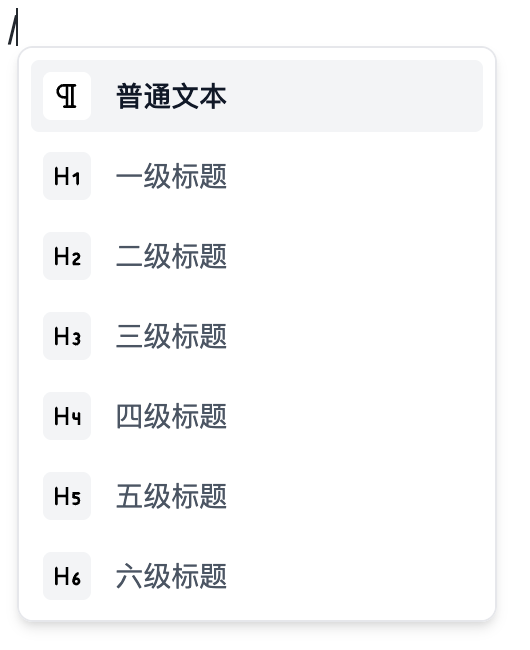标题可以使用 / 指令输入,也可以使用 # 加空格来输入,# 的数量代表标题的级别。